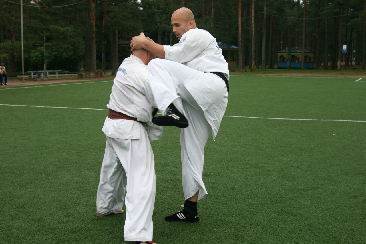 — запрещён партер (борьба на ковре), как техника имеющая малую практическую ценность в реальном бою (например с несколькими противниками).